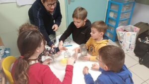 Bien encadrés par des grands-parents venus nombreux, les binômes se sont retrouvés une dernière fois pour cette période afin de partager un temps de jeux et de réaliser des crêpes.