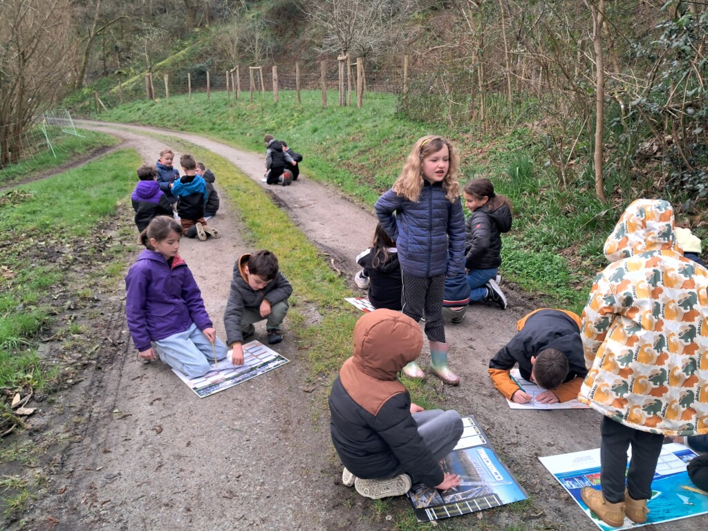 - près des canards, pour faire un jeu de devinettes lues par les CP et complétées à l’écrit par les CM1.